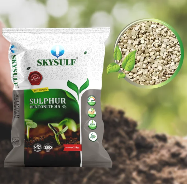 Sulphur Bentonite 90% is a type of fertilizer that contains a high concentration of sulfur in the form of elemental sulfur and is coated with bentonite clay to improve its handling and reduce sulfur dust emissions. Sulphur bentonite 90% is a highly effective fertilizer that provides plants with essential nutrients for growth and development. This fertilizer is made by combining elemental sulphur with bentonite clay, which results in a slow-release form of sulphur that is easily absorbed by plants.